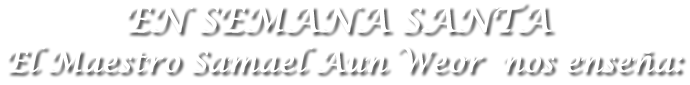 Comenzamos nuestro comentario, para intentan ahondar y reflexionar en el tema del Cristo Cósmico. Apelamos al Maestro Samael para que vivamos desde el fondo de nuestro corazón su Pasión, ejemplo de sacrificio y entrega hacia la Humanidad doliente. La Semana Santa tiene siete días, que en diferentes niveles, debemos recorrerlos todos: Luna, Mercurio, Venus, Sol, Marte, Júpiter y Saturno. Ellos nos indican las fuerzas con las que debemos trabajar. El Cristo que se expresó históricamente en el Gran Jeshuá Bhen Pandira, nos muestra aspectos internos que debemos considerar: